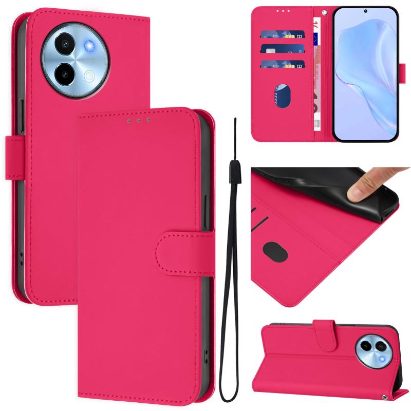 For vivo Y38 5G / Y200i Global Skin Feel Solid Color Leather Phone Case with Lanyard(Rose Red)