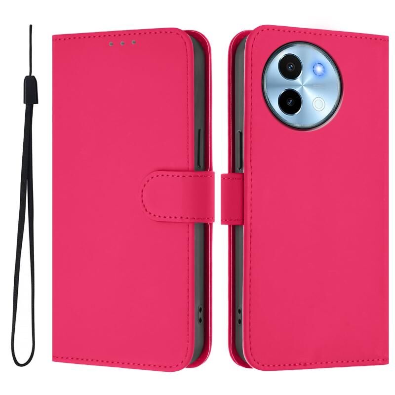 Θήκη τηλεφώνου από δέρμα με συμπαγή χρώματα και κορδόνι για vivo Y38 5G / Y200i (Καφέ)