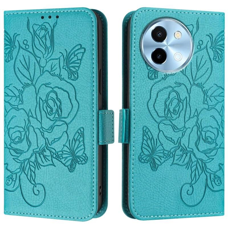 Θήκη τηλεφώνου από δέρμα με ανάγλυφο σχέδιο τριαντάφυλλου και προστασία RFID κατά της κλοπής για vivo Y38 5G / Y200i / T3x 5G (Πράσινο)