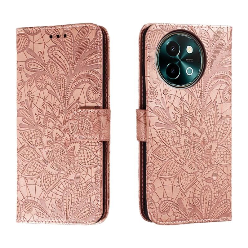 Για vivo Y38 Lace λουλούδι ανάγλυφο Flip υπόθεση τηλεφώνου δέρμα (Rose Gold)