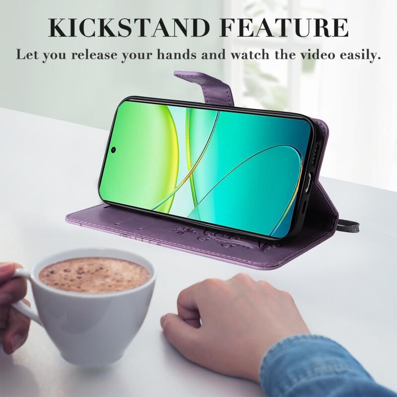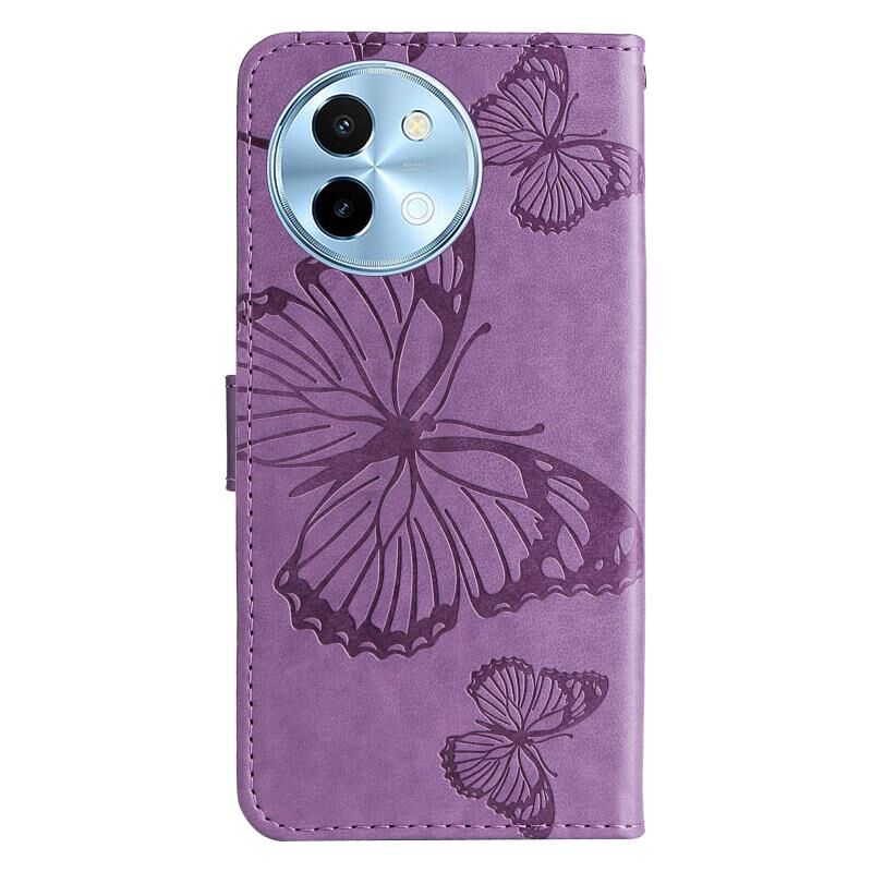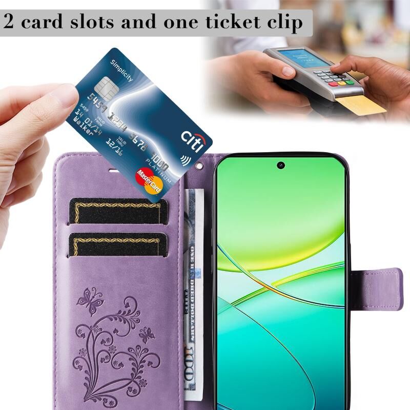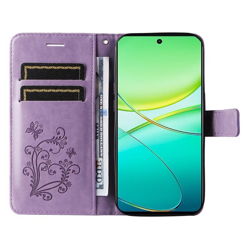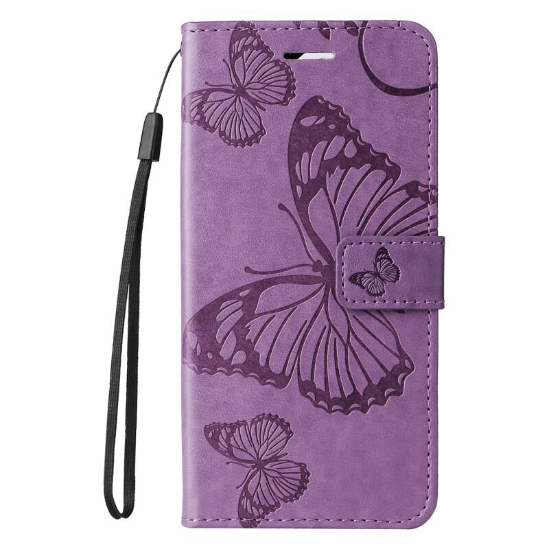 Για vivo Y38 / Y200i / T3x Παγκόσμια 3D πεταλούδα ανάγλυφο μοτίβο Flip υπόθεση τηλεφώνου δέρμα (μωβ)