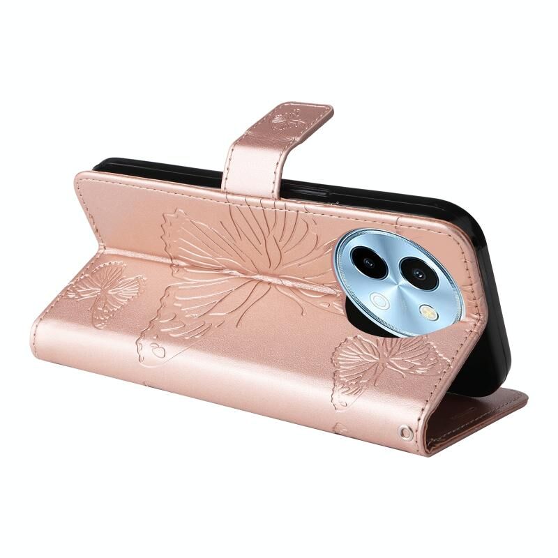 Για vivo Y38 / Y200i / T3x Παγκόσμια 3D πεταλούδα ανάγλυφο μοτίβο Flip υπόθεση τηλεφώνου δέρμα (Rose Gold)