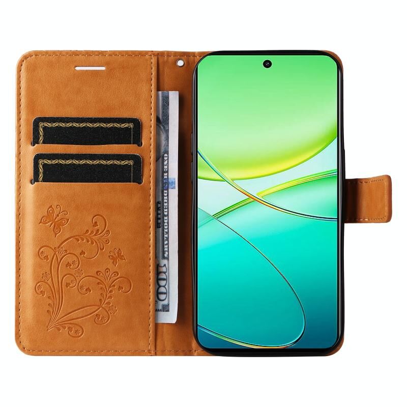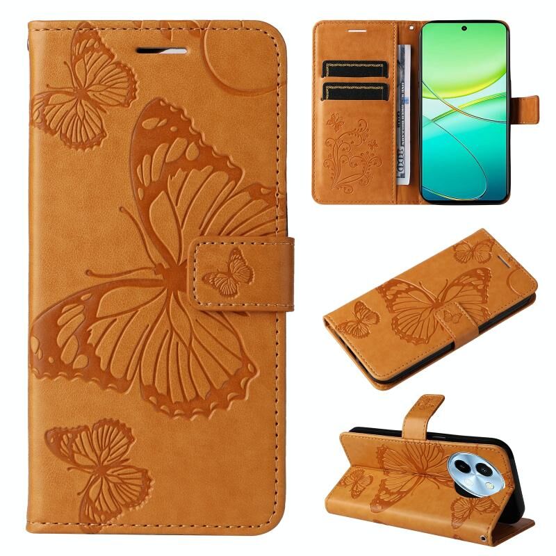 Για vivo Y38 / Y200i / T3x Παγκόσμια 3D πεταλούδα ανάγλυφο μοτίβο Flip υπόθεση τηλεφώνου δέρμα (κίτρινο)