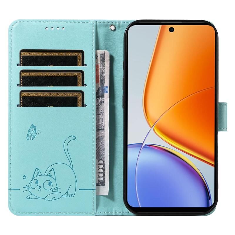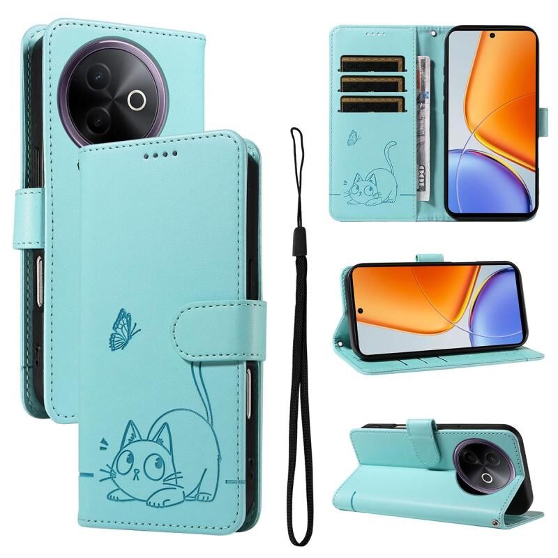 Θήκη τηλεφώνου από δέρμα με σχέδιο αναγλυφωτού αξιαγάπητου γατιού, τύπου flip, για vivo Y39 5G (Πράσινο)