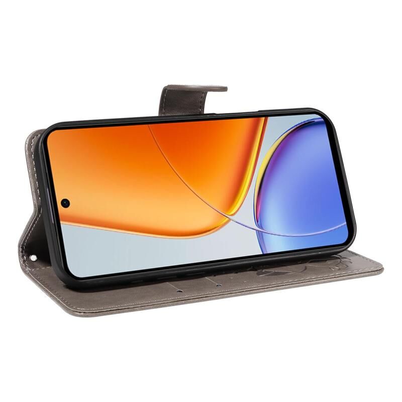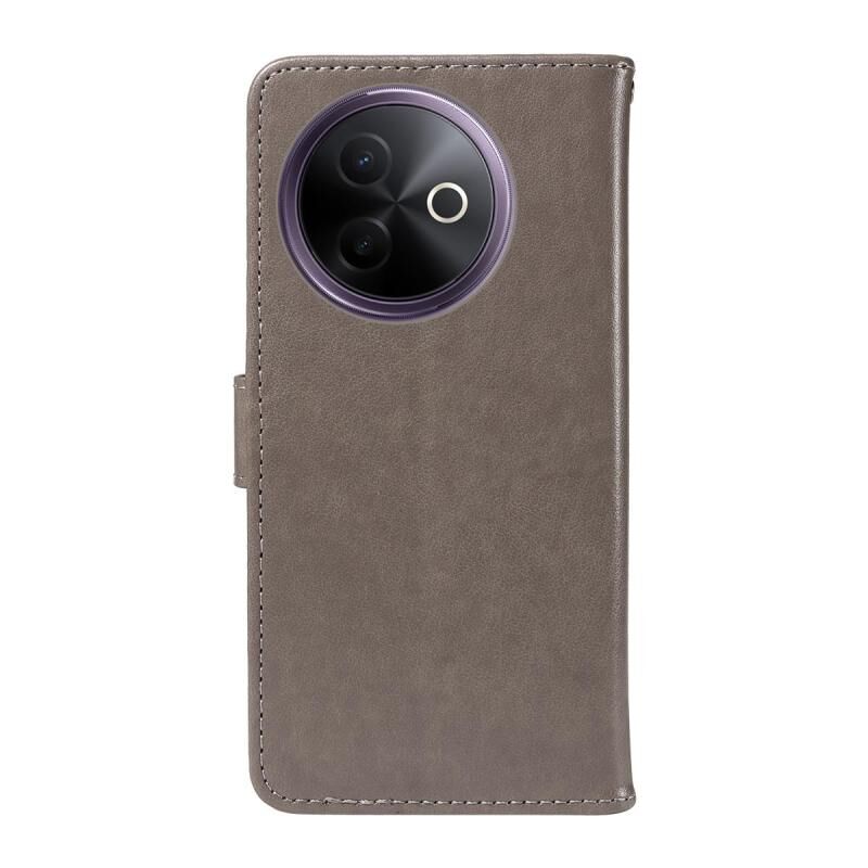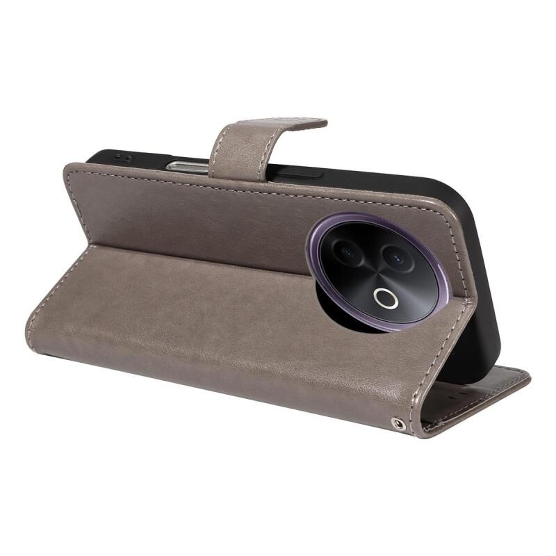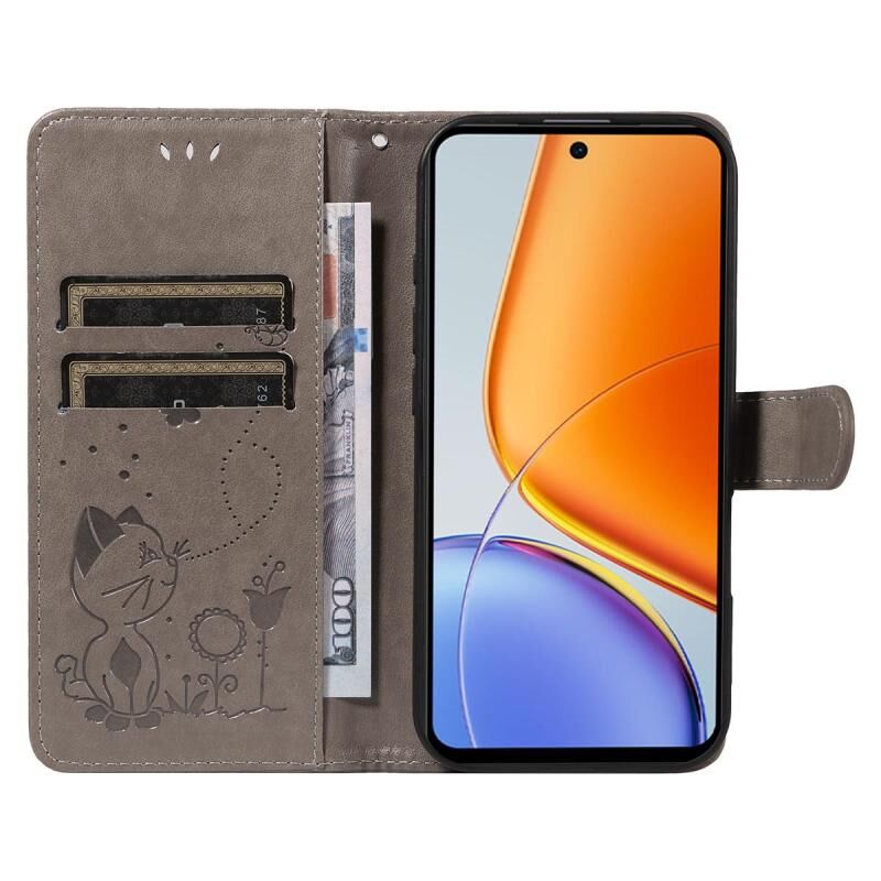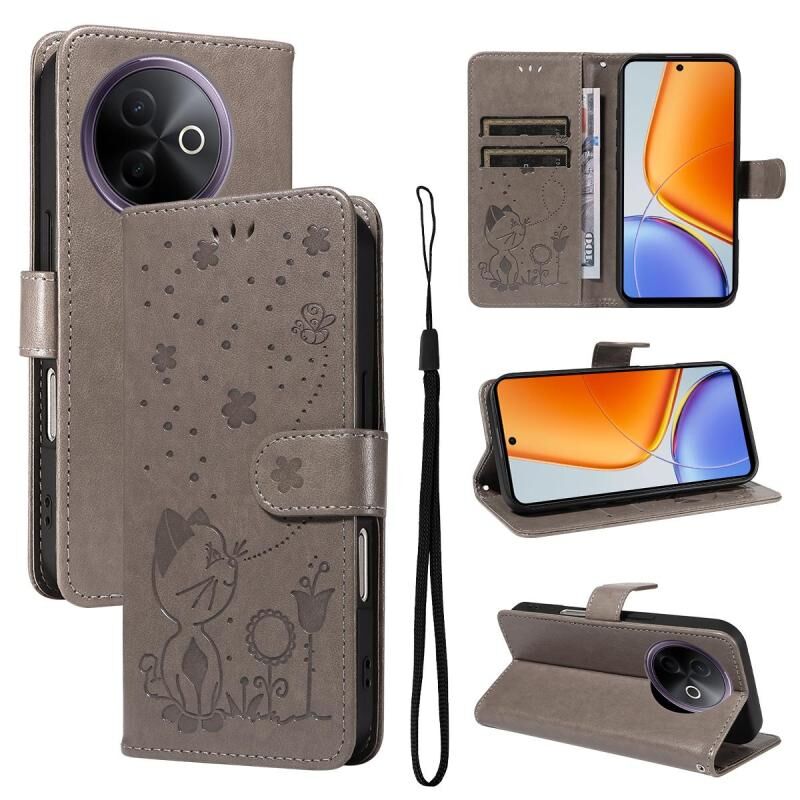 Θήκη τηλεφώνου από δέρμα με ανάγλυφο σχέδιο γάτας και μέλισσας για vivo Y39 5G (Γκρι)