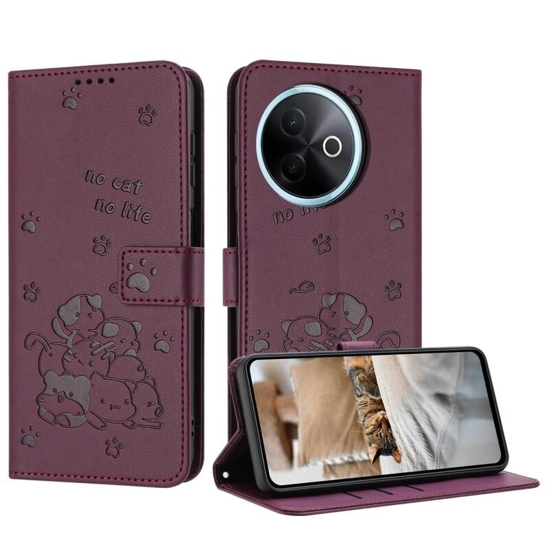 Θήκη δέρματος τηλεφώνου με ανάγλυφο γατάκι και λουρί για vivo Y39 5G (Μπλε)