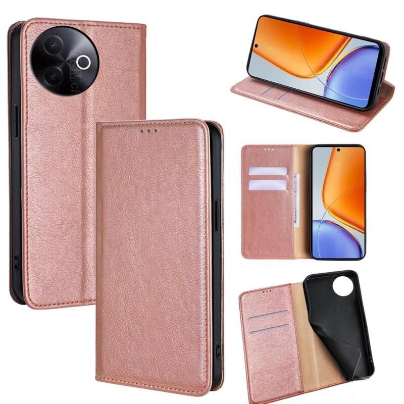 Θήκη τηλεφώνου από μαγνητικό δέρμα με γυαλιστερό λάδι και συμπαγές χρώμα για vivo Y39 5G (Ροζ χρυσός)