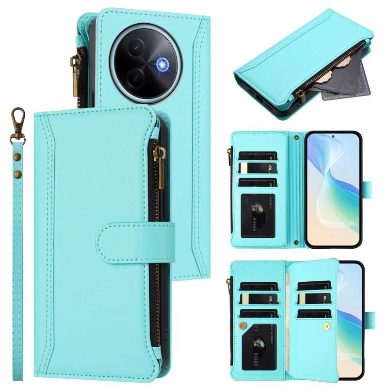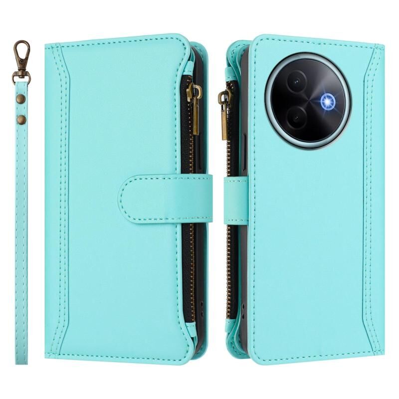 Για vivo Y39 5G Παγκόσμια θήκη δέρματος με μαγνητικό κλείσιμο, 9 υποδοχές καρτών και φερμουάρ με λουρί χειρός (Σκούρο Μπλε)