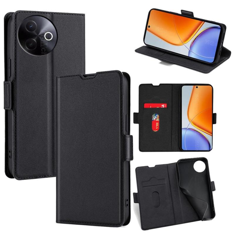 Θήκη τηλεφώνου δέρματος οριζόντιας αναδίπλωσης με λεπτό σχεδιασμό και πλευρική αγκράφα για vivo Y39 5G (Μαύρο)