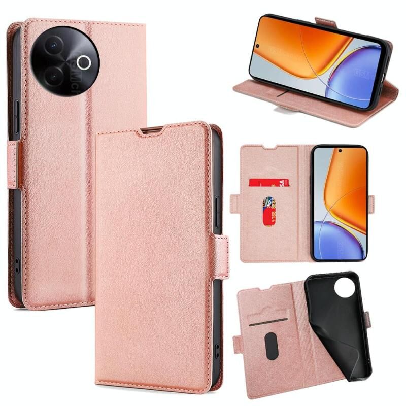 Θήκη τηλεφώνου δέρματος οριζόντιας αναδίπλωσης με λεπτό σχεδιασμό και πλευρική αγκράφα για vivo Y39 5G (Ροζ χρυσός)