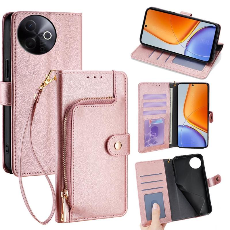 For vivo Y39 5G Global Zipper Bag Leather Phone Case(Rose Gold)