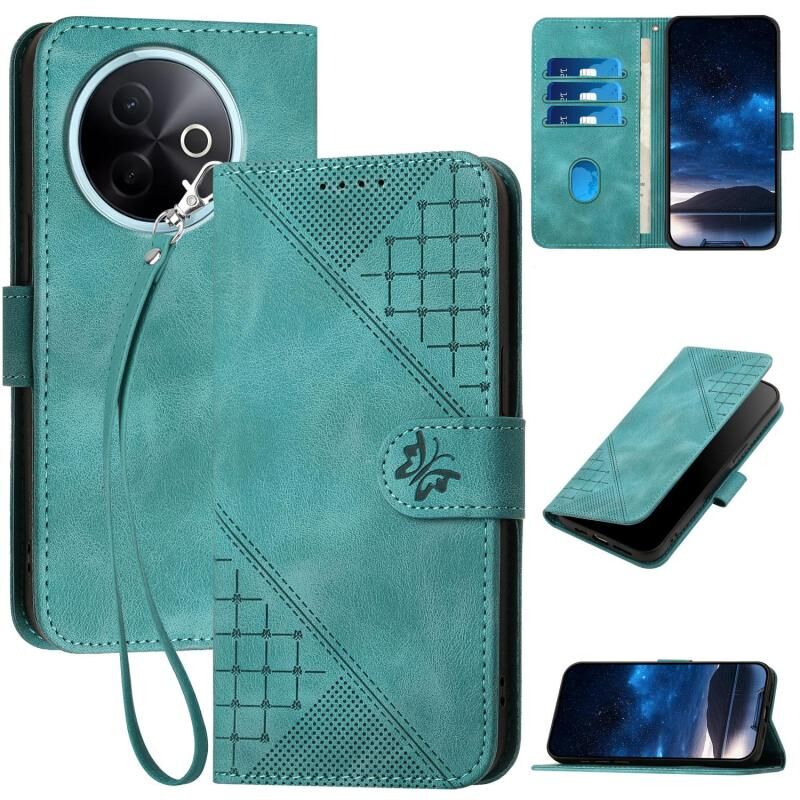 Θήκη τηλεφώνου δερμάτινη με ανάγλυφο σχέδιο πλέγματος πεταλούδας για vivo Y39 5G με κορδόνι (Σκούρο Μπλε)