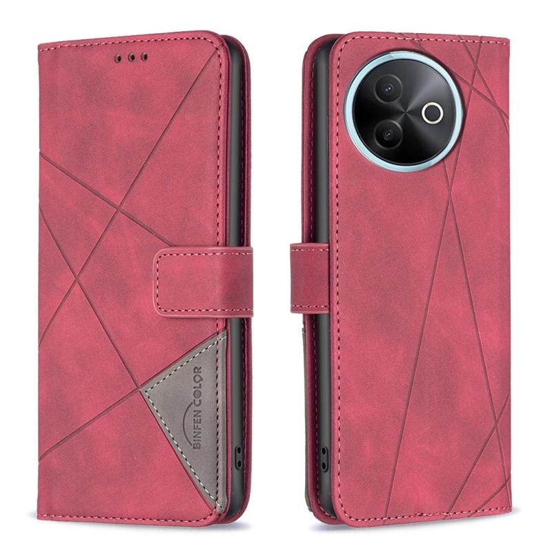 For vivo Y39 5G Magnetic Buckle Rhombus Texture Leather Phone Case(Red)