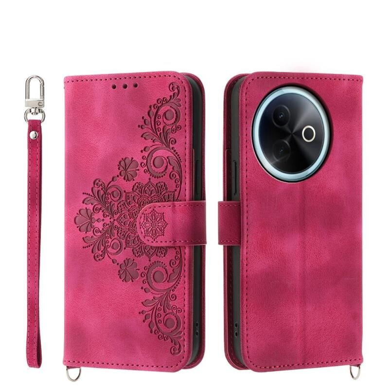 Θήκη τηλεφώνου από δέρμα με ανάγλυφα λουλούδια και υφή δέρματος για vivo Y39 5G (Μωβ)