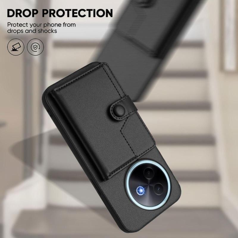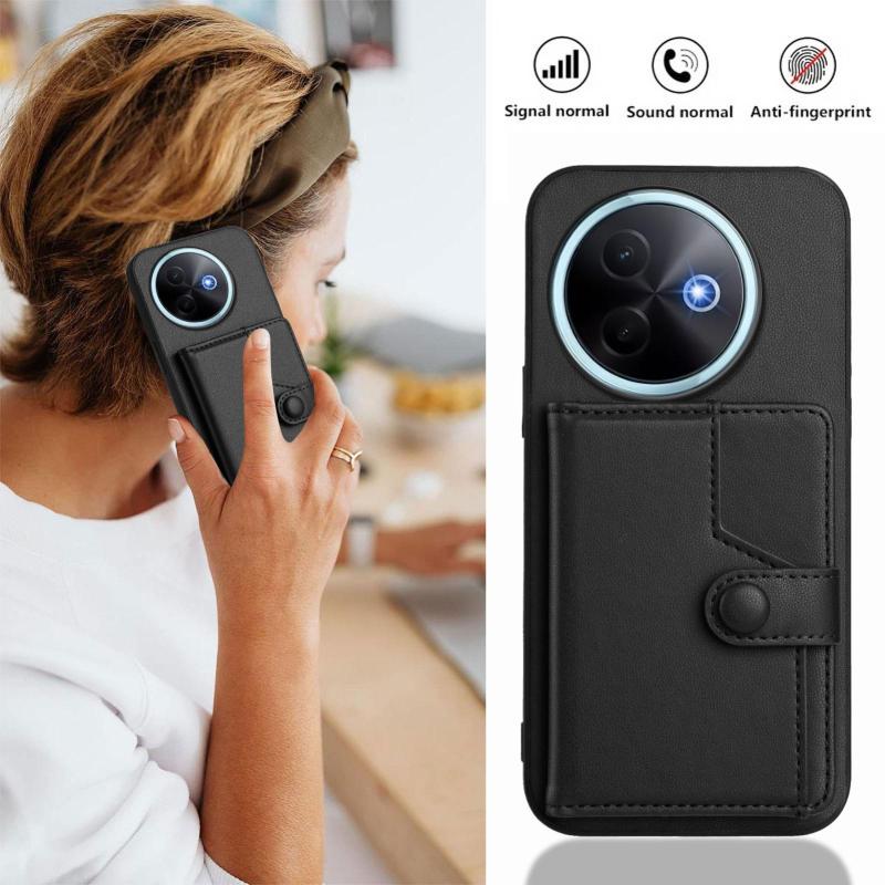For vivo Y39 5G / Y300i Button Card Bag RFID Anti-theft Phone Case(Black)