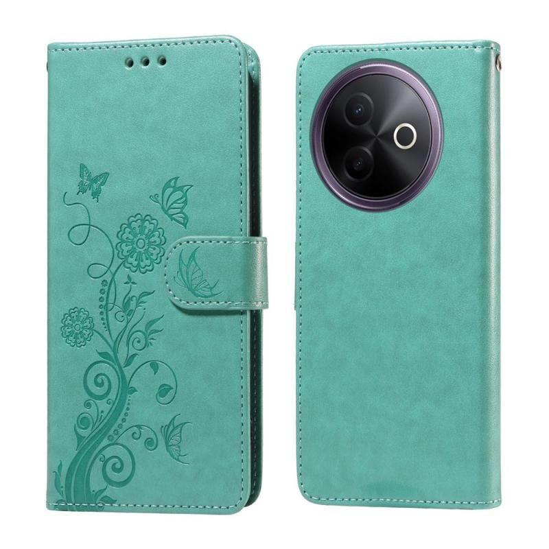 Θήκη τηλεφώνου από δέρμα με ανάγλυφα λουλούδια και πεταλούδες για vivo Y39 5G / Y300i (Μωβ)