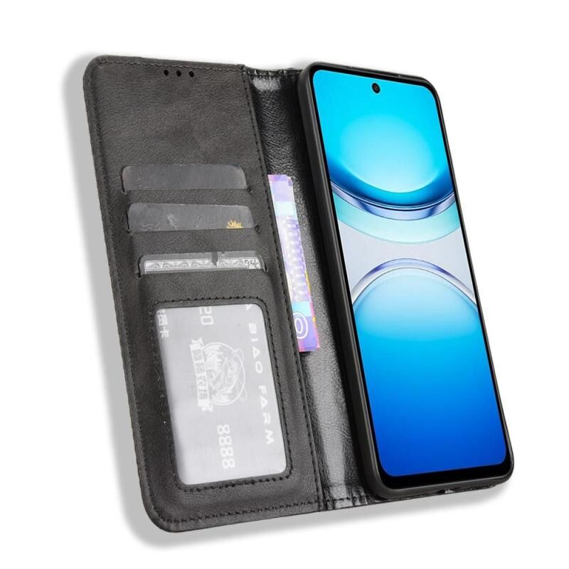 Θήκη τηλεφώνου από δέρμα με ανάγλυφη υφή και μαγνητικό κούμπωμα για vivo Y39 5G / Y300i (Μαύρο)