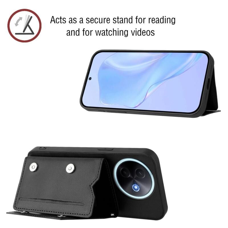 1. Πολυλειτουργικός Σχεδιασμός: Συνδυάζει λειτουργίες θήκης τηλεφώνου και πορτοφολιού για εύκολη μεταφορά.