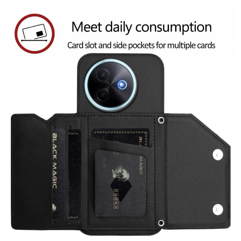 Θήκη τηλεφώνου για vivo Y39 5G / Y300i με αίσθηση δέρματος, τέσσερις θήκες καρτών και λουρί καρπού (Ροζ)