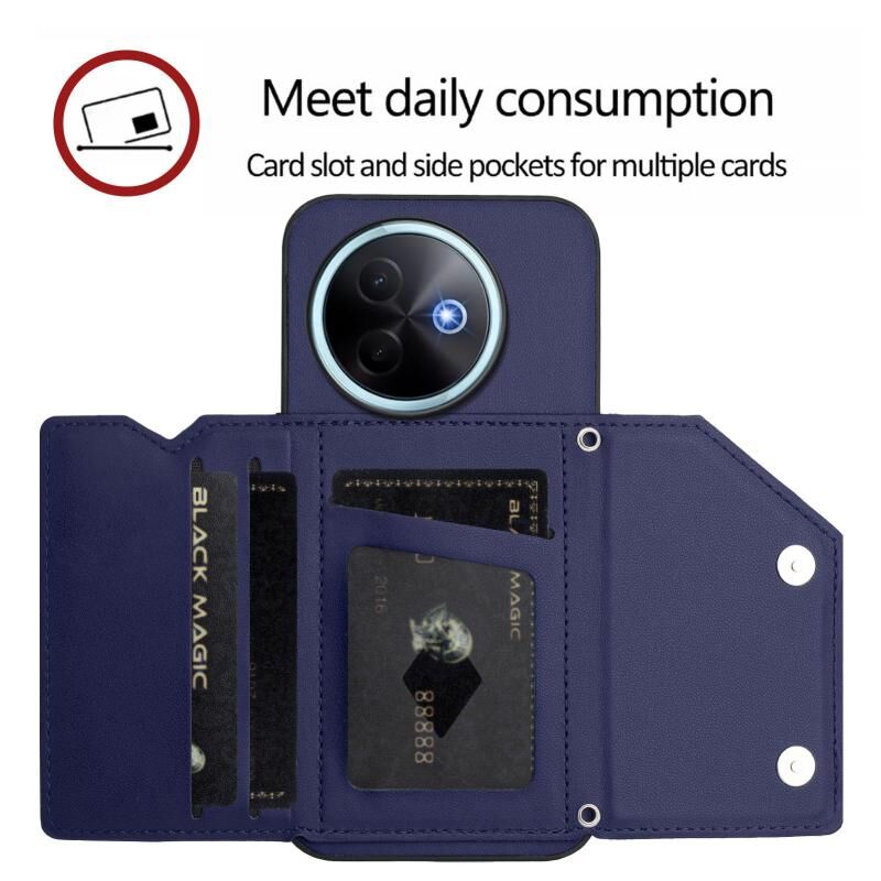 Θήκη τηλεφώνου για vivo Y39 5G / Y300i με αίσθηση δέρματος, τέσσερις θήκες καρτών και λουρί καρπού (Ροζ)