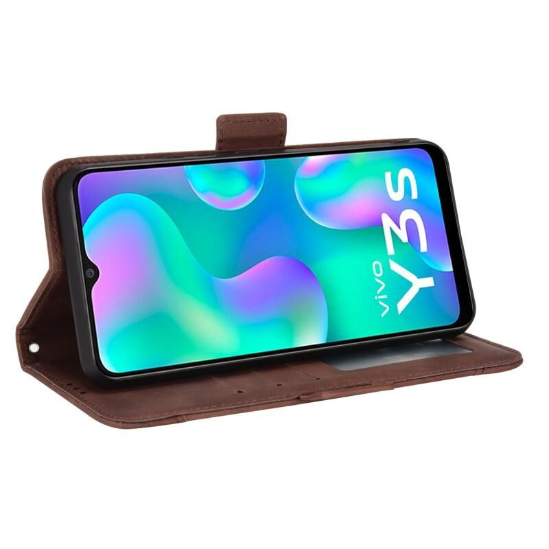 Για το vivo Y3s 2021 δέρμα αίσθηση μοσχάρι μοτίβο δερμάτινη θήκη τηλεφώνου (καφέ)