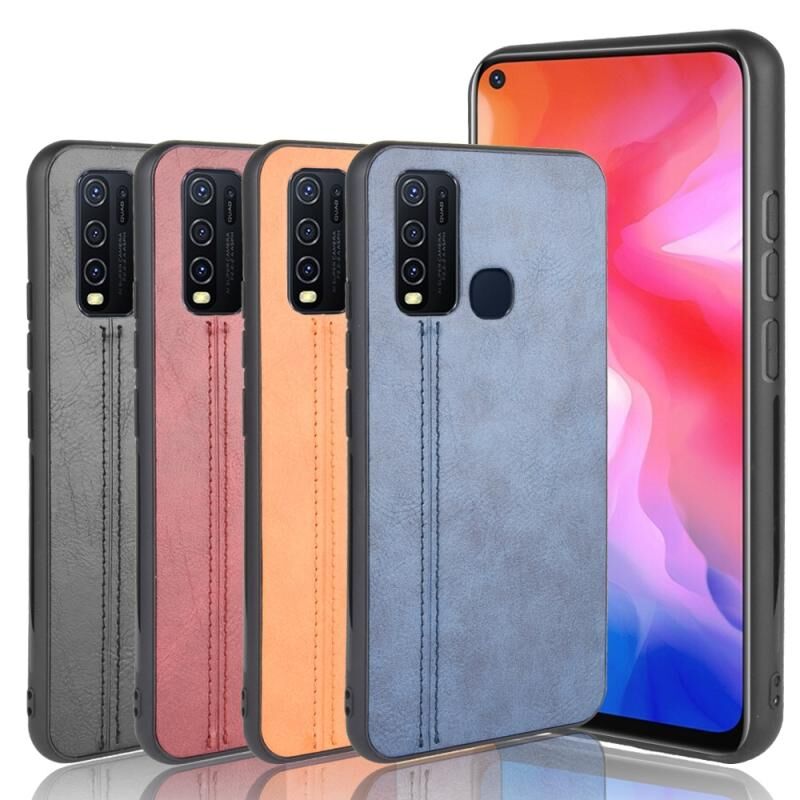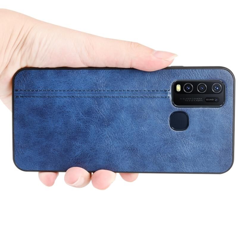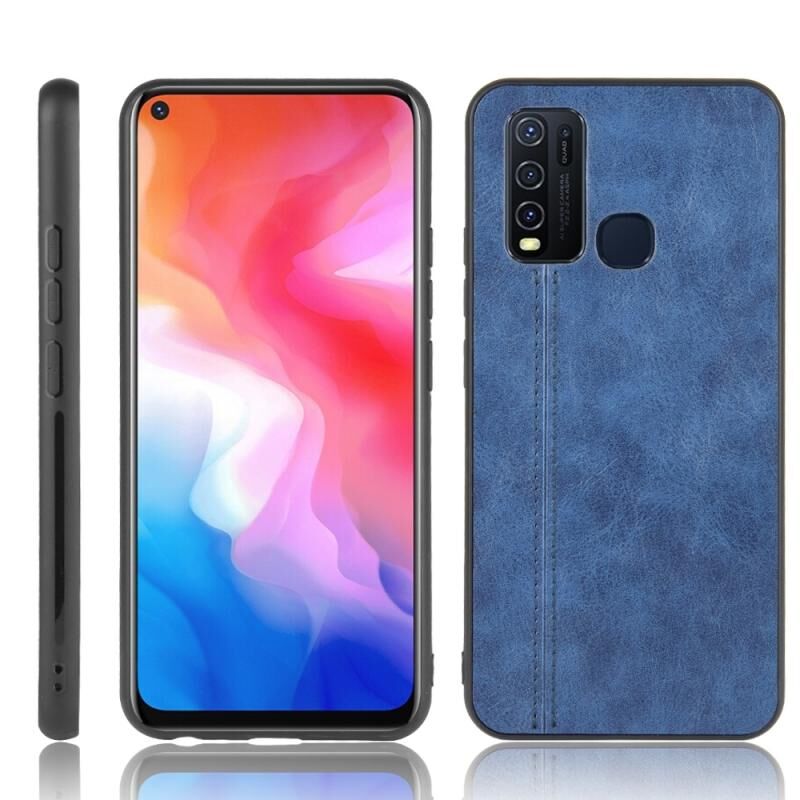 Για το Vivo Y50 Shockproof Ράψιμο μοτίβο αγελάδας δέρμα PC + PU + TPU υπόθεση (μπλε)