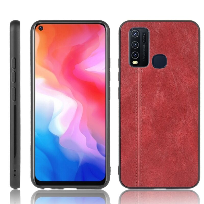 Για το Vivo Y50 Shockproof Ράψιμο μοτίβο αγελάδας δέρμα PC + PU + TPU υπόθεση (κόκκινο)