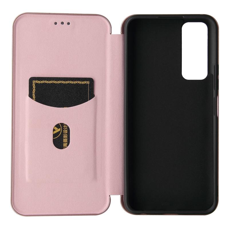 Θήκη για vivo Y51 2020 με υφή ανθρακονήματος, οριζόντια, ανακλινόμενη από TPU + PC + Δερματίνη PU με υποδοχή για κάρτες (Μαύρο)