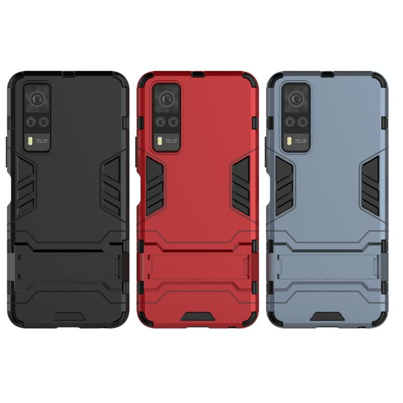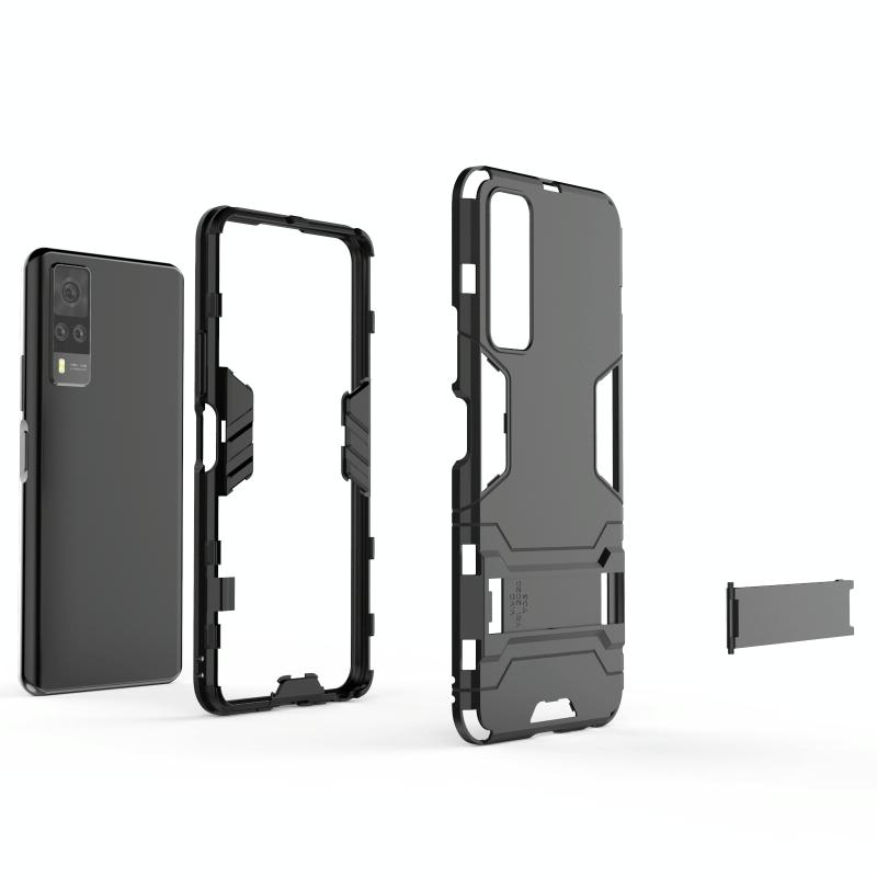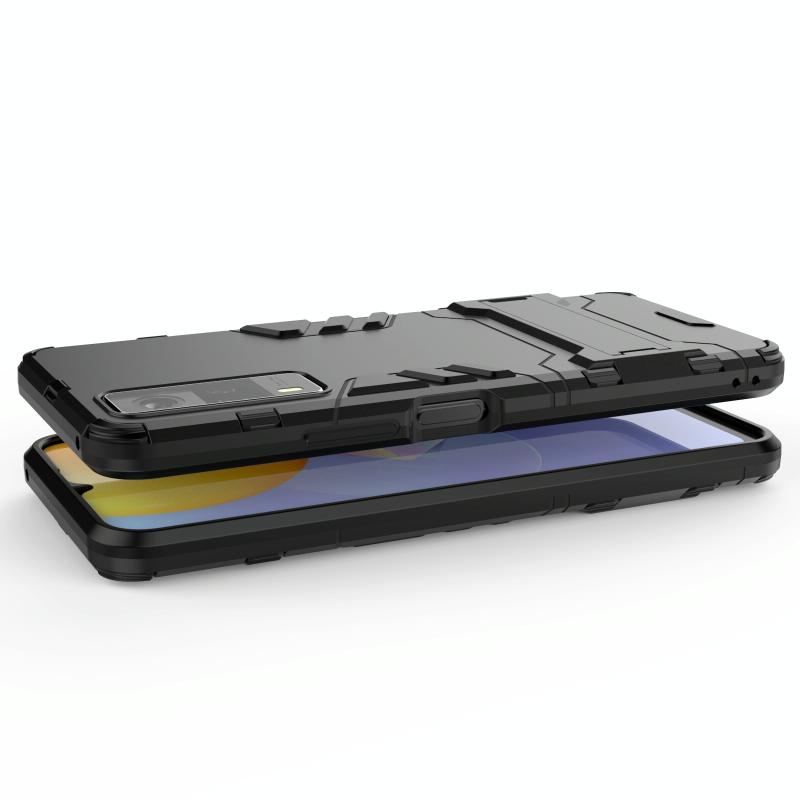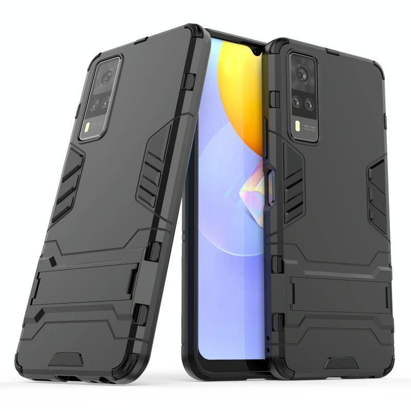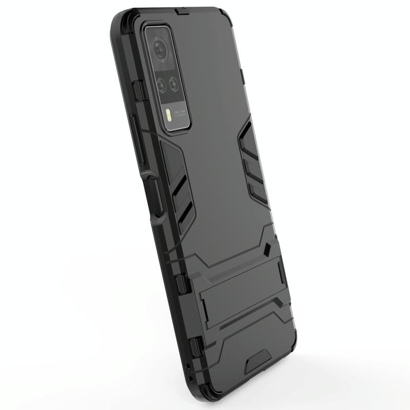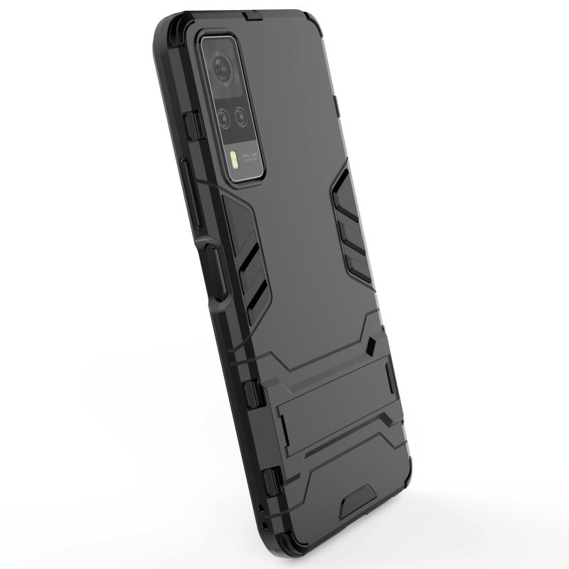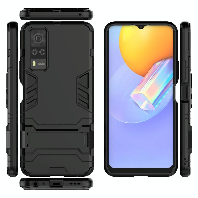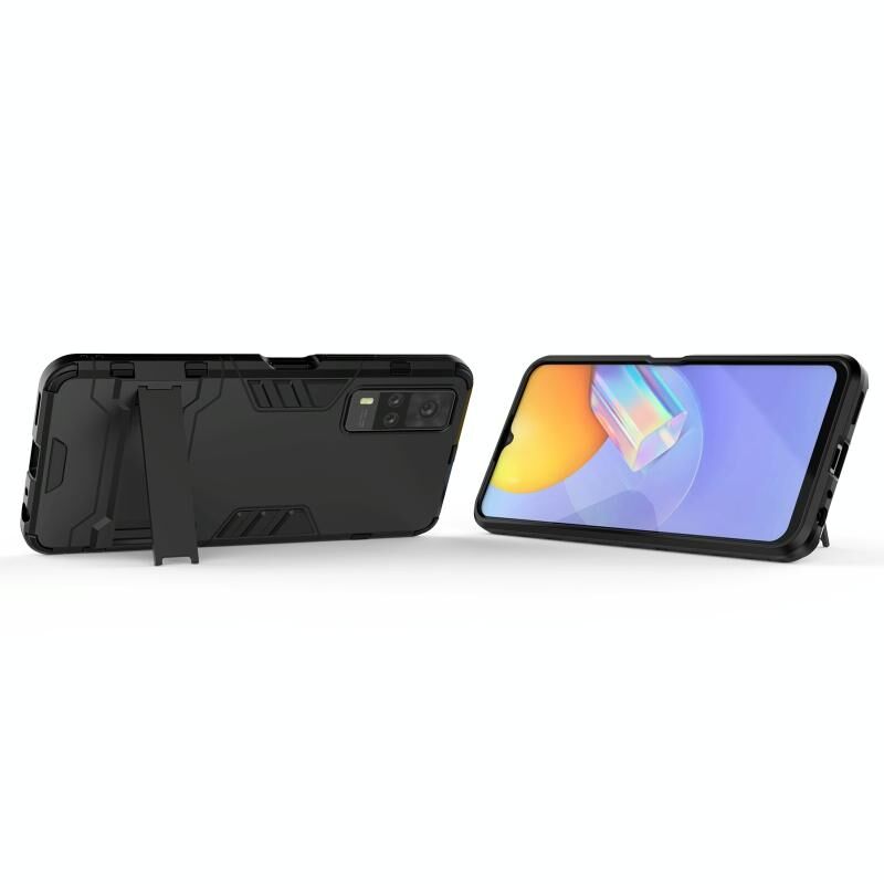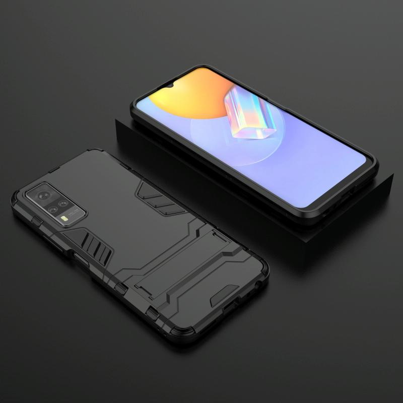 Θήκη προστασίας PC + TPU αντικραδασμική με βάση στήριξης για Vivo Y51 (Ινδία 2020) (Μαύρο)