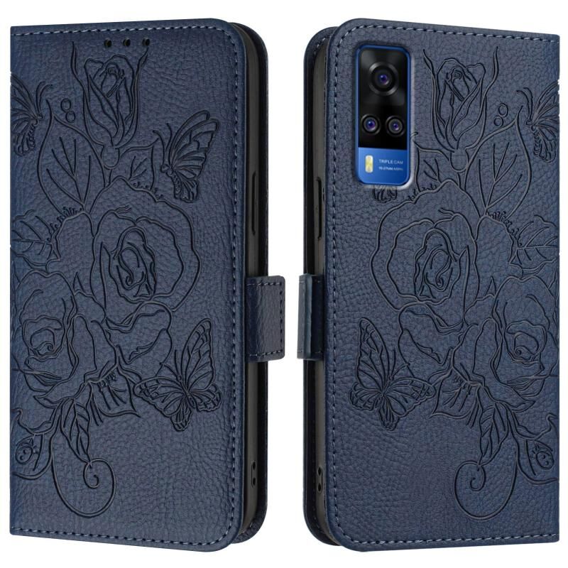 Θήκη τηλεφώνου από δέρμα με ανάγλυφο σχέδιο τριαντάφυλλου και προστασία RFID κατά της κλοπής για vivo Y51 2020 India / Y51a 2021 / Y53s 4G (Πράσινο)