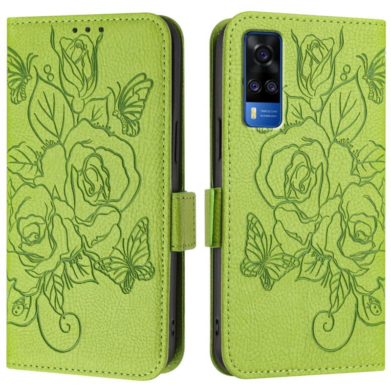 Θήκη τηλεφώνου από δέρμα με ανάγλυφο σχέδιο τριαντάφυλλου και προστασία RFID κατά της κλοπής για vivo Y51 2020 India / Y51a 2021 / Y53s 4G (Πράσινο)
