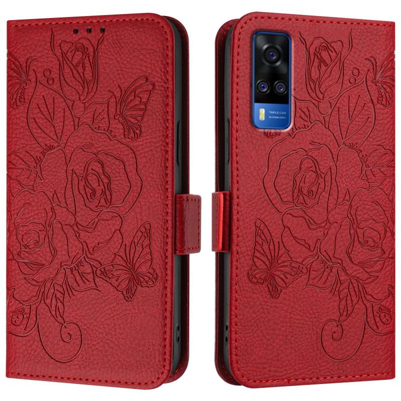 For vivo Y51 2020 India / Y51a 2021 / Y53s 4G Embossed Rose RFID Anti-theft Leather Phone Case(Red)