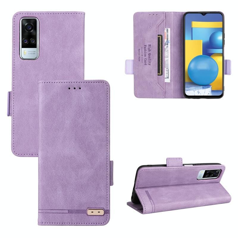 Για vivo Y51 2020 / Y31 2021 Μαγνητικό κούμπωμα Δερμάτινη θήκη τηλεφώνου (μωβ)