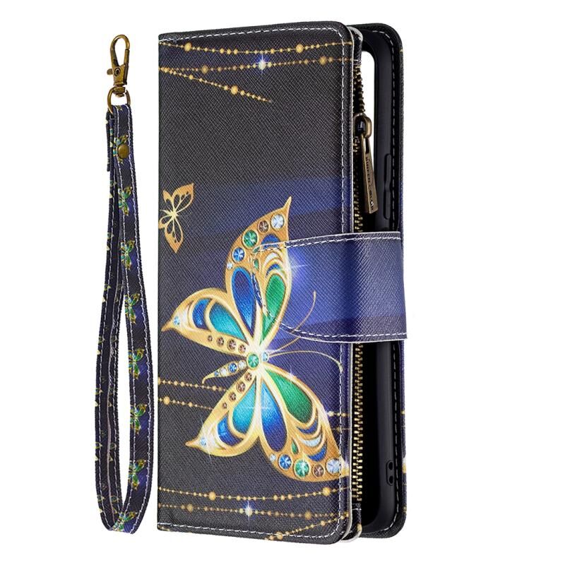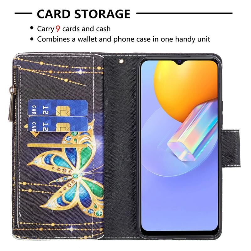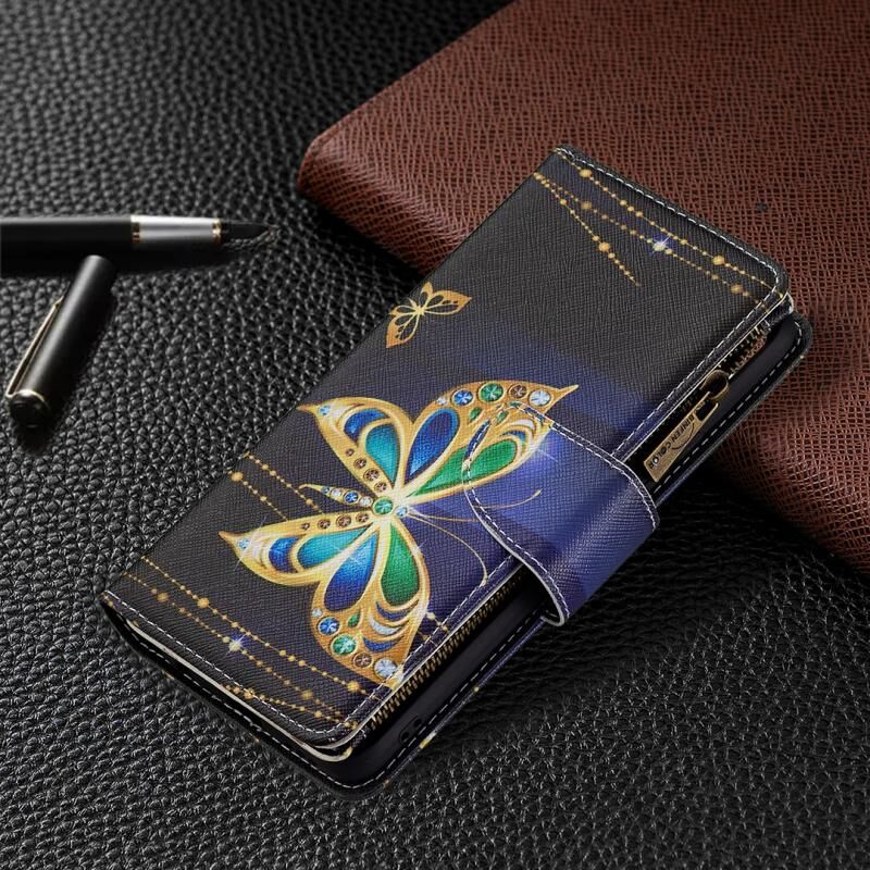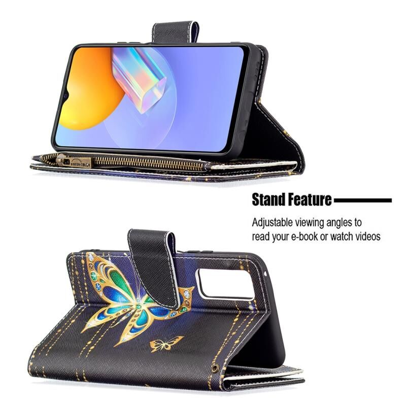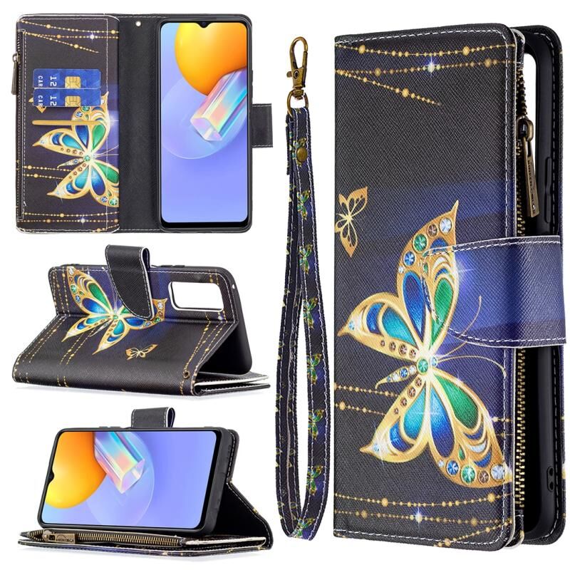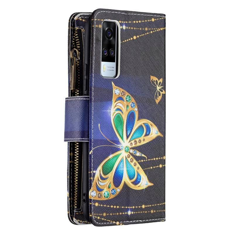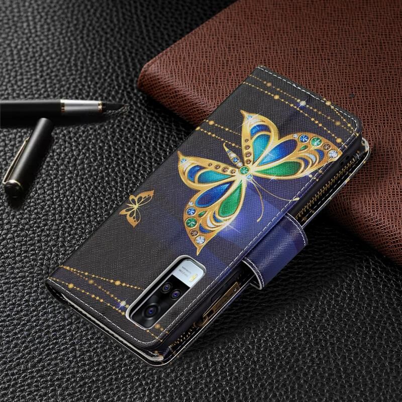 Θήκη δέρματος οριζόντιας αναδίπλωσης με φερμουάρ και σχέδιο ζωγραφικής για vivo Y51 2020/Y51a/Y51s με βάση για κάρτες και πορτοφόλι (Μεγάλη Πεταλούδα)