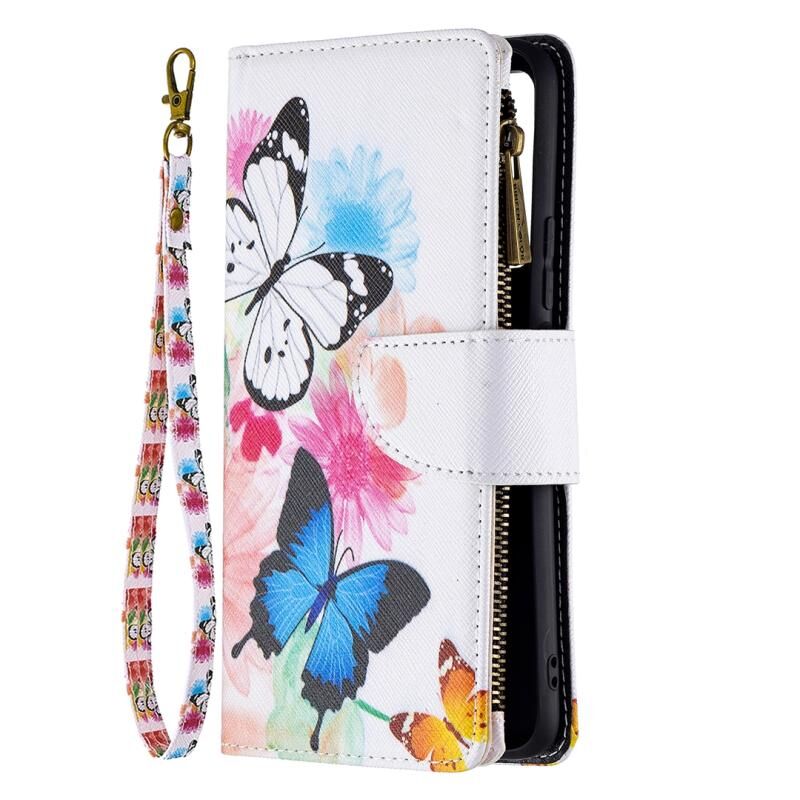 Θήκη δέρματος οριζόντιας αναδίπλωσης με φερμουάρ και σχέδιο ζωγραφικής για vivo Y51 2020/Y51a/Y51s με βάση για κάρτες και πορτοφόλι (Δύο Πεταλούδες)