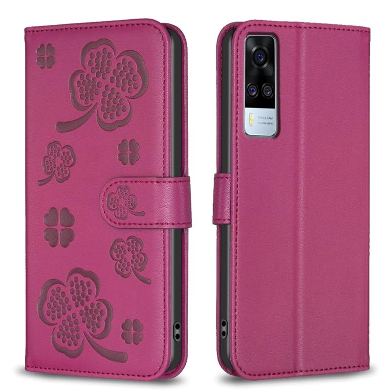 For vivo Y51 2020 / Y51a / Y51s Four-leaf Embossed Leather Phone Case(Rose Red)