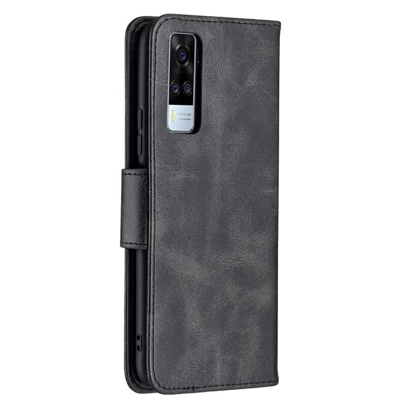 Για το vivo Y51 2020 / Y51a / Y51s Ρετρό Lambskin υφή καθαρό χρώμα οριζόντια Flip PU δέρμα υπόθεση με θήκη & υποδοχές για κάρτες & πορτοφόλι & κορδόνι (Μαύρο)