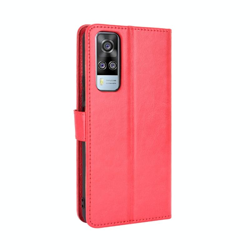 Θήκη βιβρίου από δέρμα με υφή Retro Crazy Horse, οριζόντια, για vivo Y51A 2021 / Y51 2020 (Ινδική έκδοση) με βάση στήριξης & θήκες για κάρτες & κορδόνι (Χρυσό)