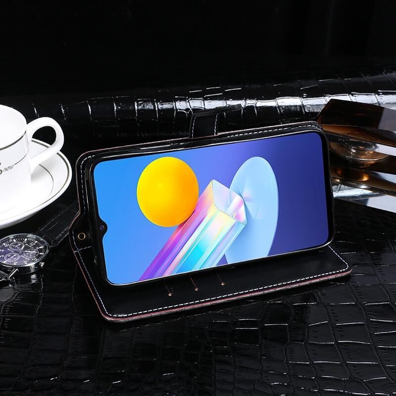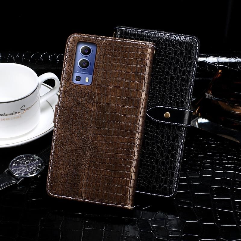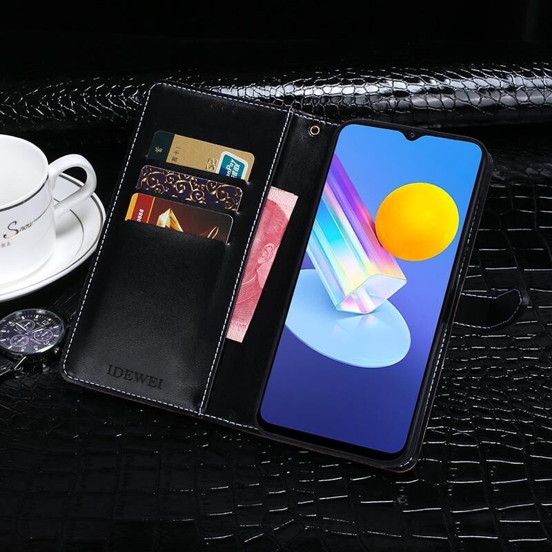Για vivo Y52 5G / Y72 5G idewei Δερμάτινη θήκη οριζόντιας αναδίπλωσης με υφή κροκόδειλου με βάση & υποδοχές καρτών & πορτοφόλι (Μαύρο) (idewei)