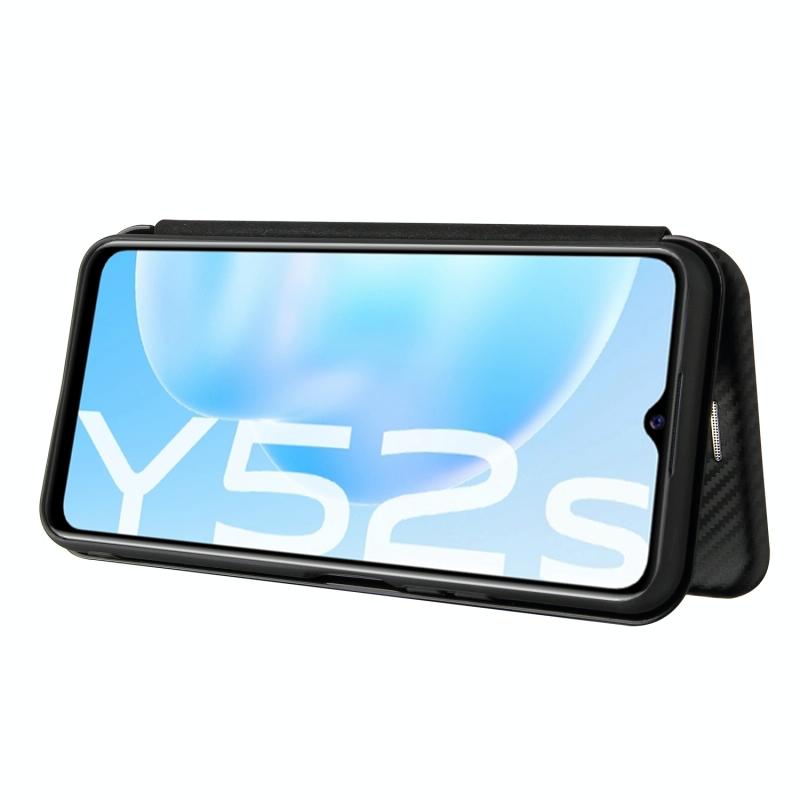 Για vivo Y52s 5G / iQOO U3 Θήκη οριζόντιας αναδίπλωσης από ανθρακονήματα TPU + PC + Δερματίνη PU με υποδοχή κάρτας (Καφέ)