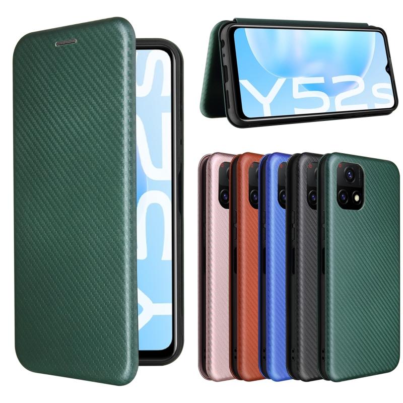 Για vivo Y52s 5G / iQOO U3 Θήκη οριζόντιας αναδίπλωσης από ανθρακονήματα TPU + PC + Δερματίνη PU με υποδοχή κάρτας (Καφέ)