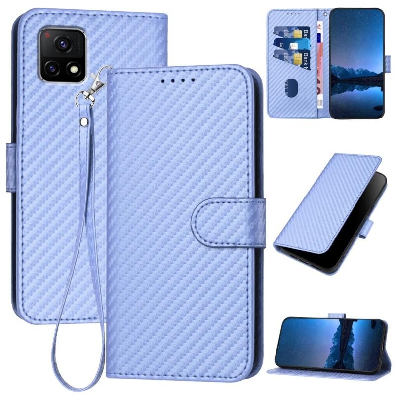 Θήκη τηλεφώνου από δέρμα με ανθρακονήματα και λουρί για vivo Y52s 5G/iQOO U3/Y31s 5G YX0070 (ανοιχτό μωβ)