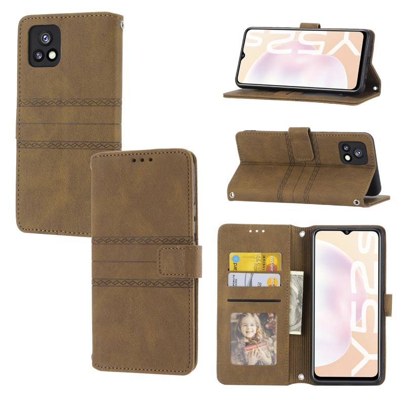 Θήκη τηλεφώνου δερμάτινη οριζόντιας αναδίπλωσης για vivo Y52s με ανάγλυφες ραβδώσεις και μαγνητικό κούμπωμα (Κόκκινο)