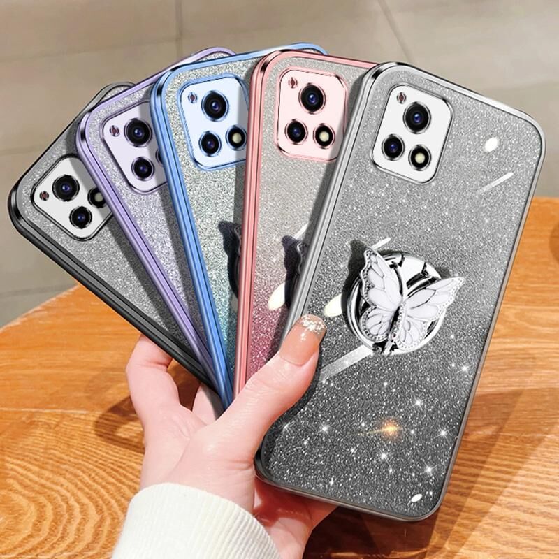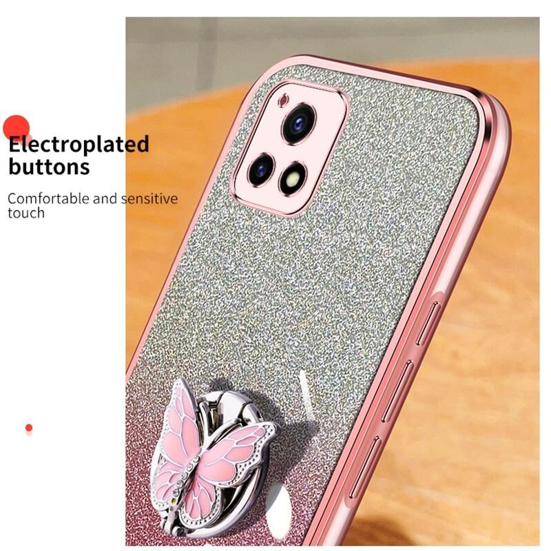 Για το vivo Y52s Επιμεταλλωμένο διαβάθμιση Glitter πεταλούδα κάτοχος TPU τηλέφωνο υπόθεση (μαύρο)