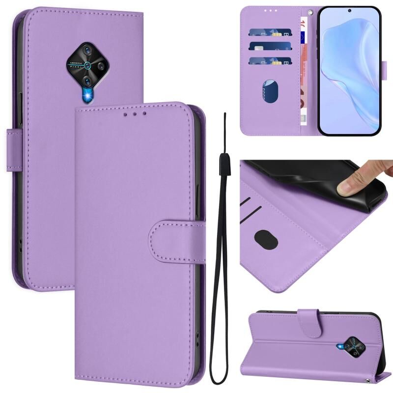 Θήκη τηλεφώνου από δέρμα με αίσθηση αφής, συμπαγές χρώμα για vivo Y53S 4G / Y51A 2021 με κορδόνι (Λεβάντα-πορφυρό (Levánta-porfiró) or, more simply: Λεβάντα (Levánta) - often understood to imply a purplish hue.)