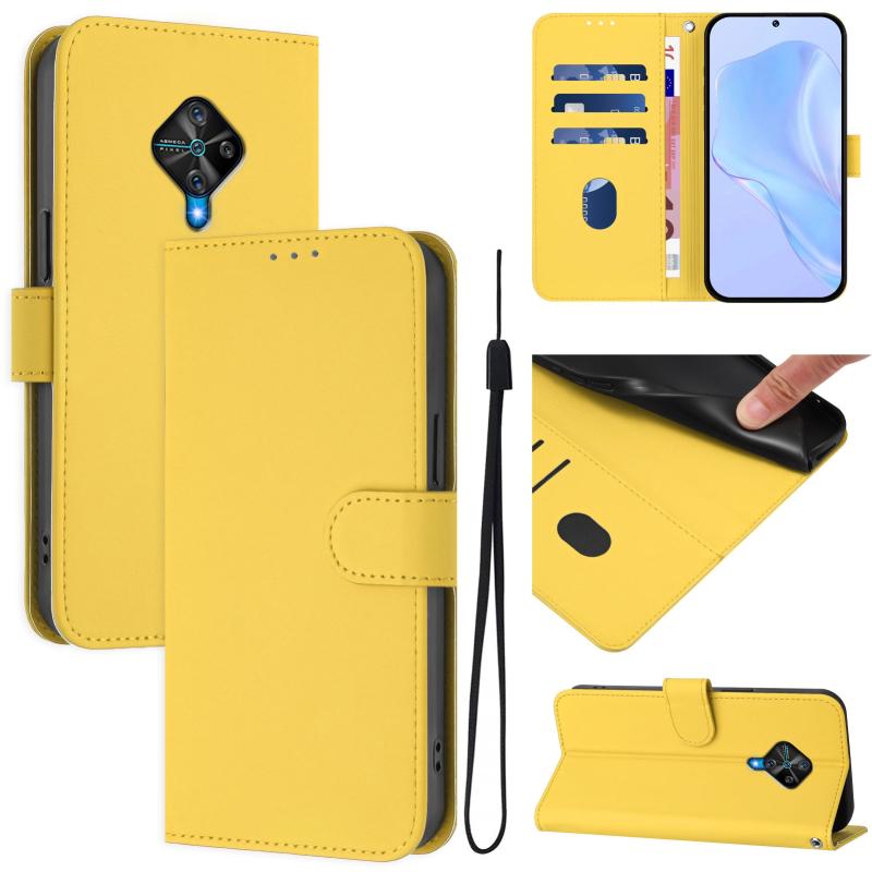 For vivo Y53S 4G / Y51A 2021 Skin Feel Solid Color Leather Phone Case with Lanyard(Lemon Yellow)