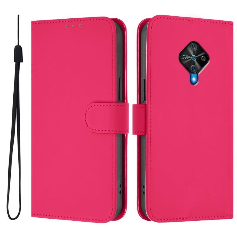 Θήκη τηλεφώνου από δέρμα με αίσθηση αφής, συμπαγές χρώμα για vivo Y53S 4G / Y51A 2021 με κορδόνι (Καφέ)