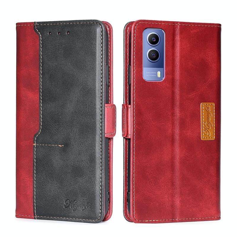 Για vivo Y53S 5G/iQOO Z5X/T1X αντίθεση χρώμα πλευρά πόρπη δερμάτινη θήκη τηλεφώνου (κόκκινο + μαύρο)
