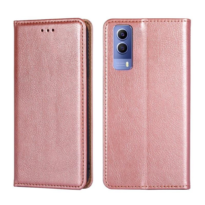 Για vivo Y53s 5G / iQOO Z5X / T1X Καθαρό χρώμα μαγνητική δερμάτινη θήκη τηλεφώνου (Rose Gold)