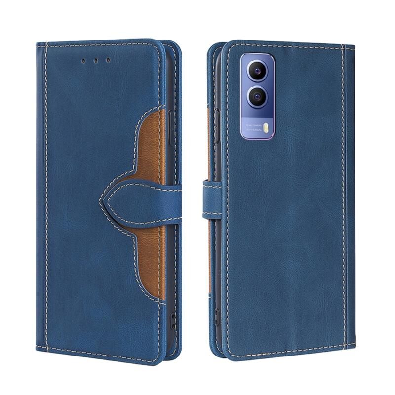 Για vivo Y53s 5G / iQOO Z5X / T1X δέρμα αίσθηση άχυρο καπέλο μαγνητική πόρπη δερμάτινη υπόθεση τηλέφωνο (Μπλε)